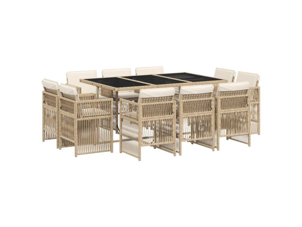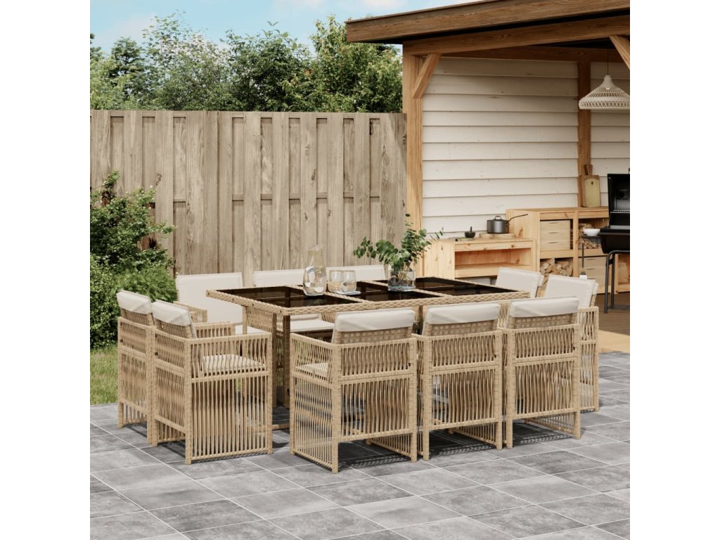 11dílný zahradní jídelní set s poduškami béžový polyratan 3211030