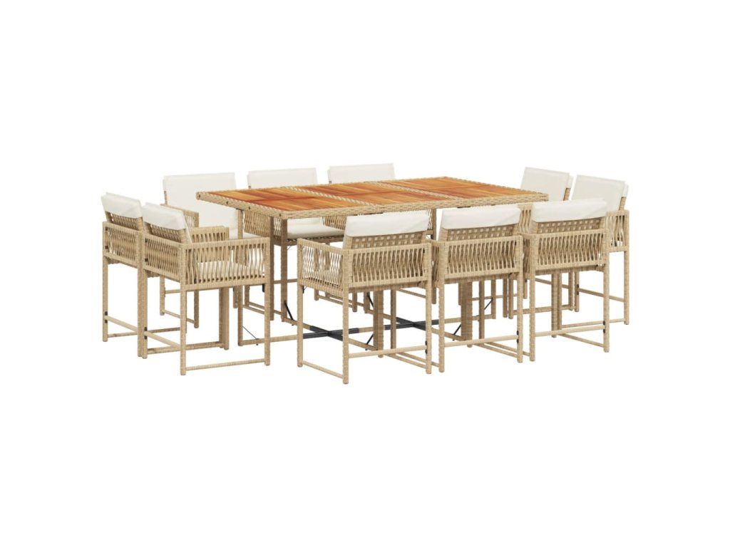 11dílný zahradní jídelní set s poduškami béžový polyratan 3211576
