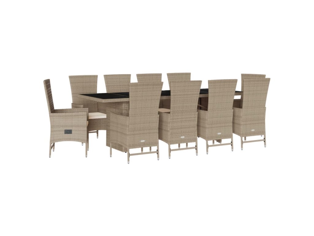 11dílný zahradní jídelní set s poduškami béžový polyratan 3277585