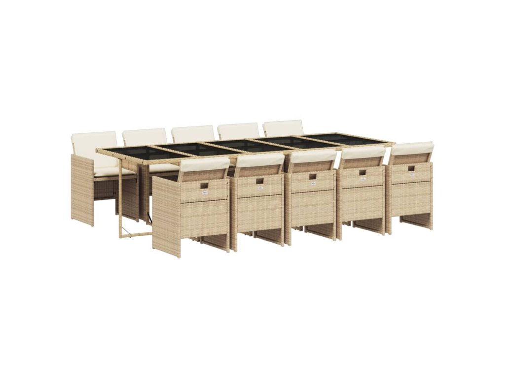 11dílný zahradní jídelní set s poduškami béžový polyratan 3277701
