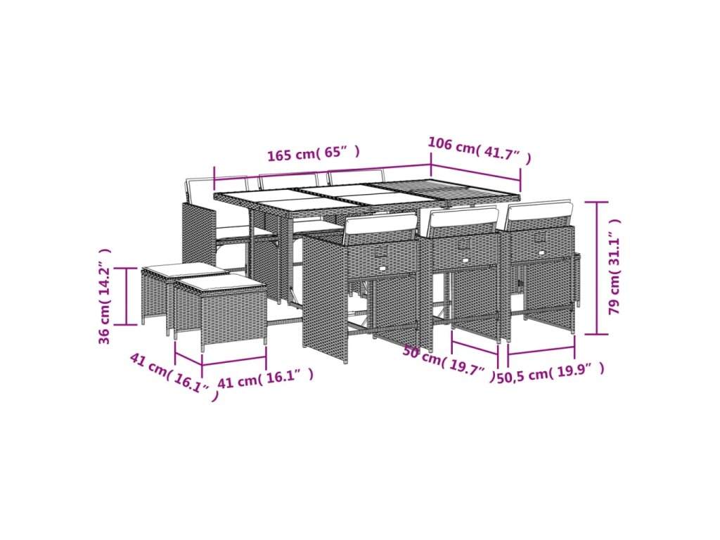 11dílný zahradní jídelní set s poduškami béžový polyratan 3277923