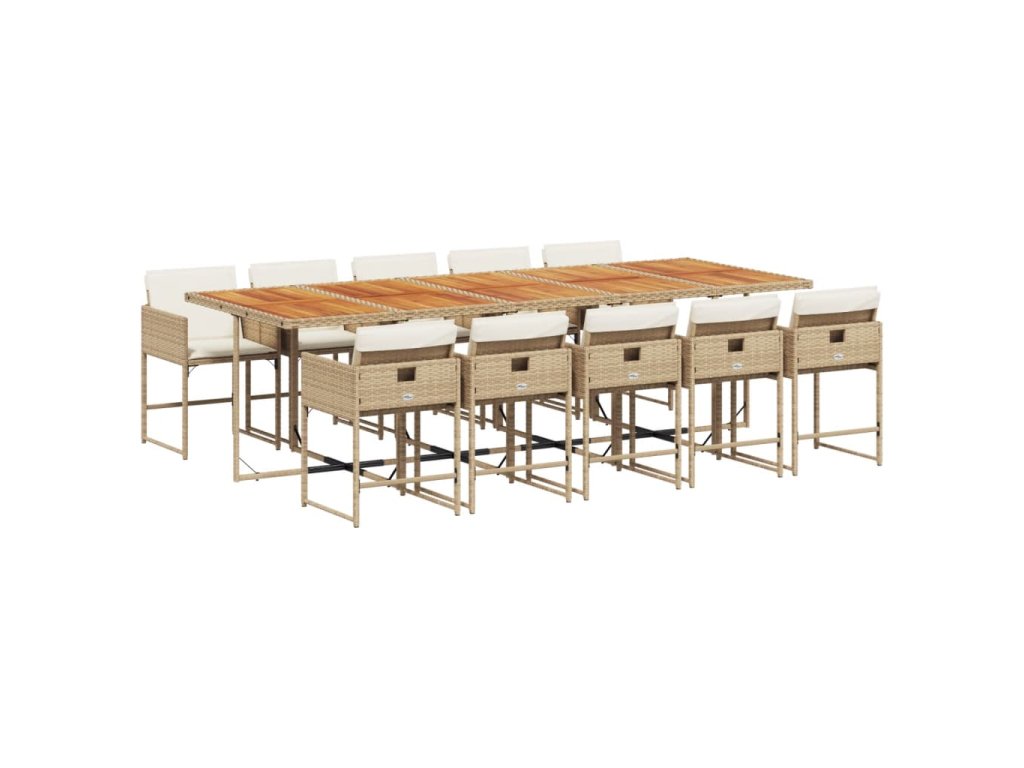 11dílný zahradní jídelní set s poduškami béžový polyratan 3278067