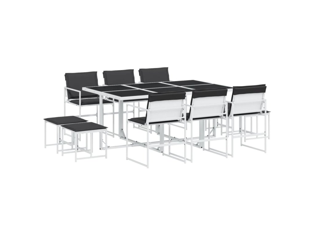 11dílný zahradní jídelní set s poduškami bílý textilen 3295114