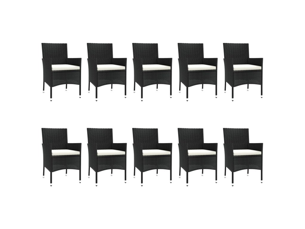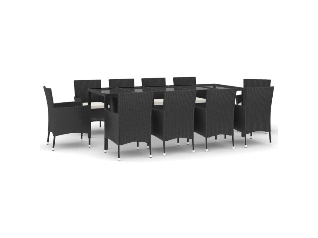 11dílný zahradní jídelní set s poduškami černý polyratan 3187323