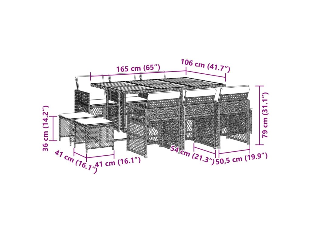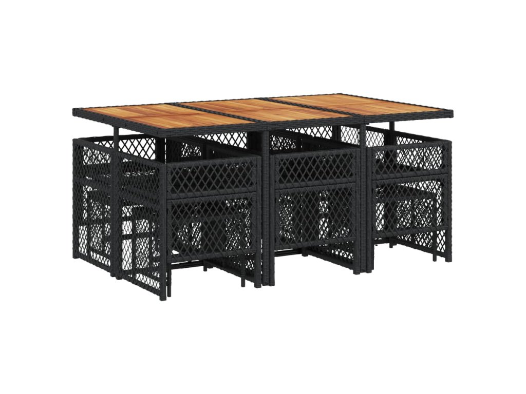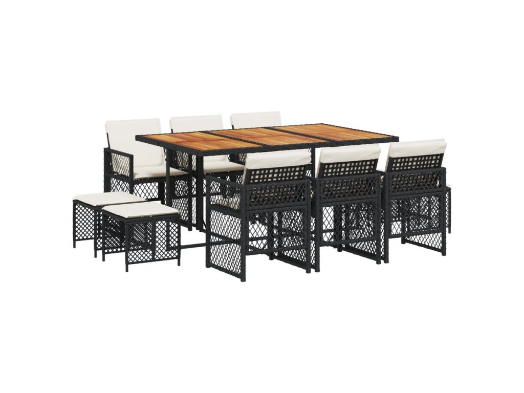 11dílný zahradní jídelní set s poduškami černý polyratan 3210795