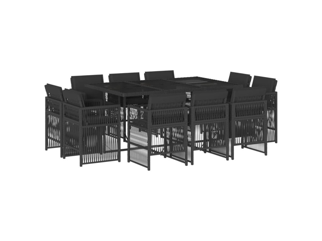 11dílný zahradní jídelní set s poduškami černý polyratan 3211027