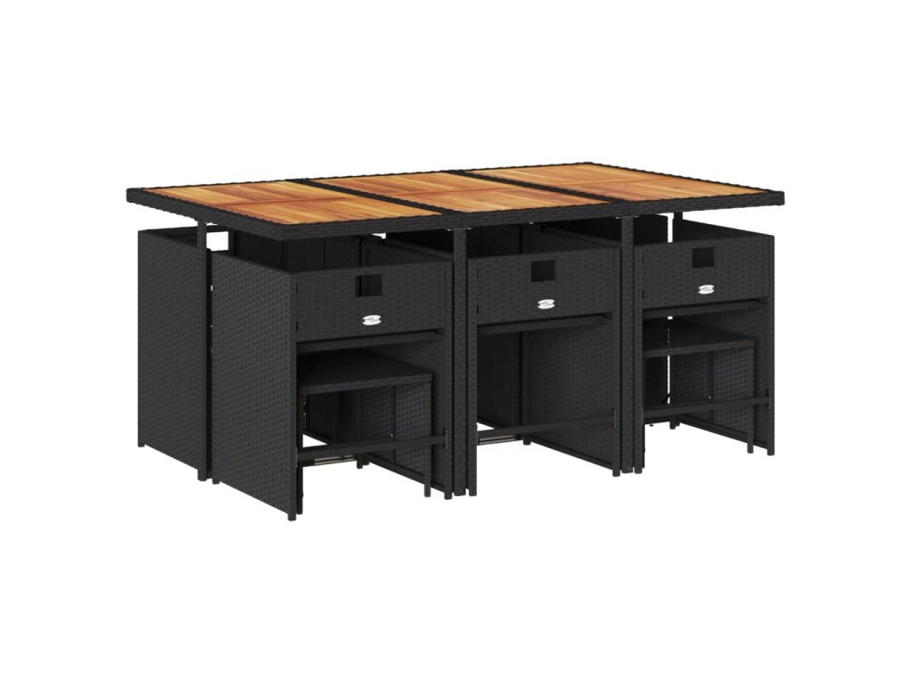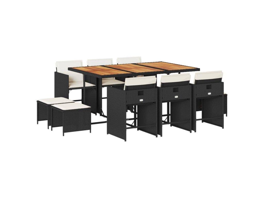 11dílný zahradní jídelní set s poduškami černý polyratan 3211155