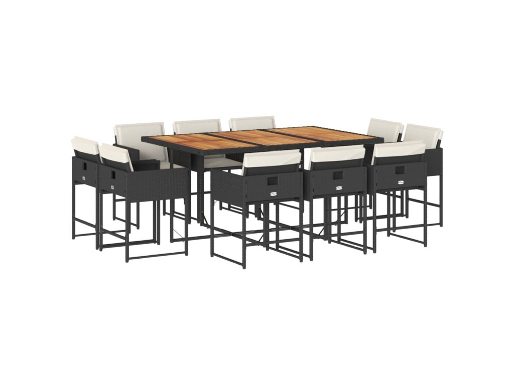 11dílný zahradní jídelní set s poduškami černý polyratan 3211395