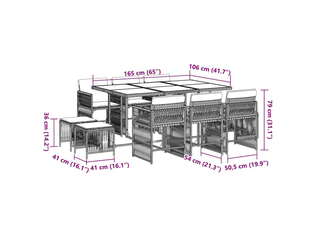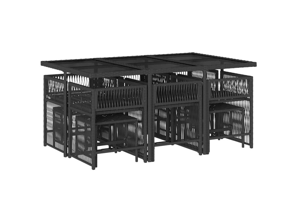 11dílný zahradní jídelní set s poduškami černý polyratan 3211687
