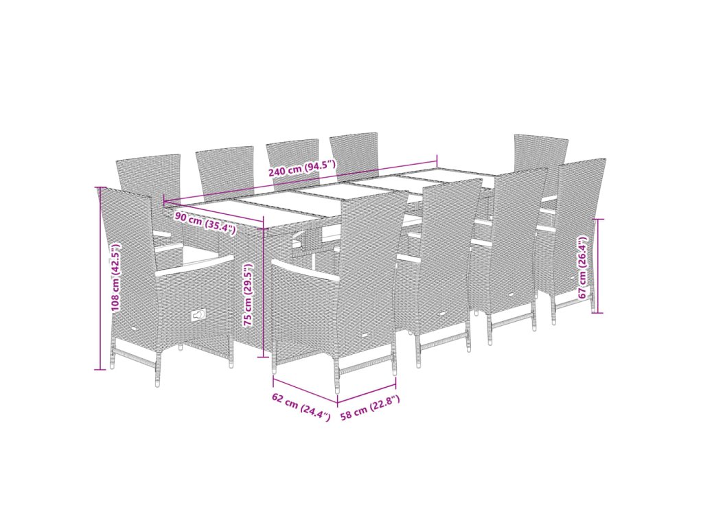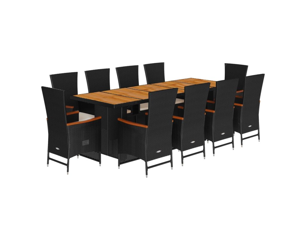 11dílný zahradní jídelní set s poduškami černý polyratan 3277527