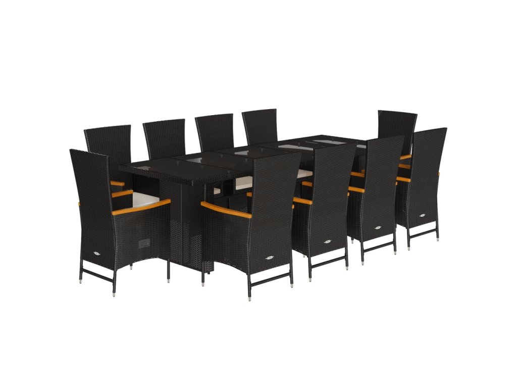 11dílný zahradní jídelní set s poduškami černý polyratan 3277534
