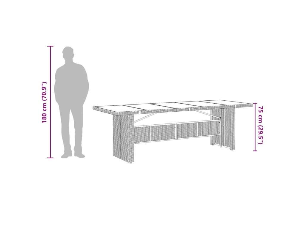 - Skleněná deska stolu: Deska venkovního stolu je zhotovena ze silného a odolného tvrzeného skla, takže ji snadno očistíte vlhkým hadříkem a zároveň do vašeho venkovního prostoru vnese nádech elegance.