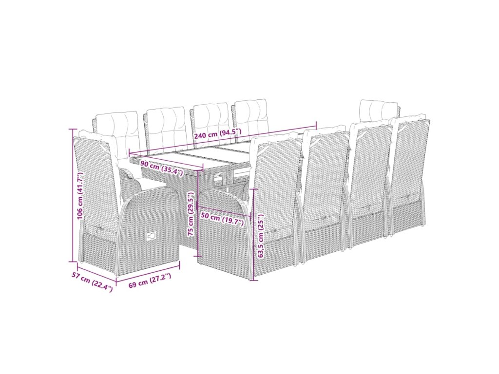 11dílný zahradní jídelní set s poduškami černý polyratan 3277644