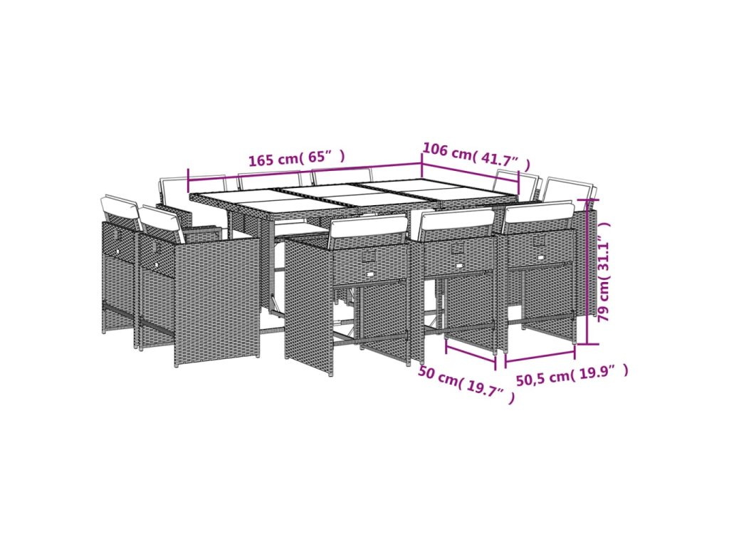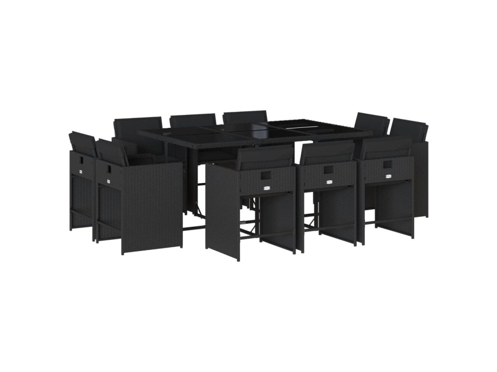 11dílný zahradní jídelní set s poduškami černý polyratan 3277974