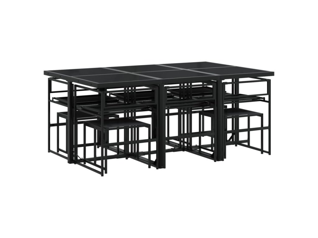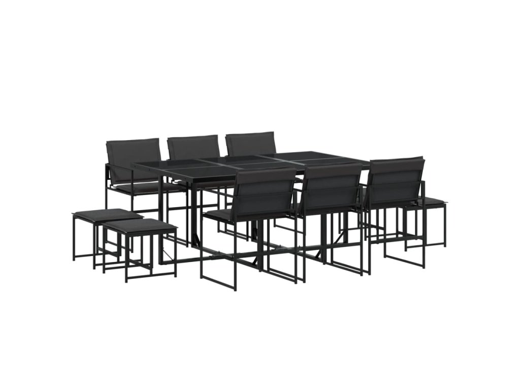 11dílný zahradní jídelní set s poduškami černý textilen 3295084