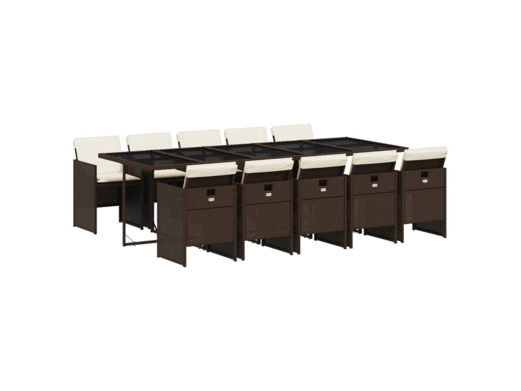 11dílný zahradní jídelní set s poduškami hnědý polyratan 3210573