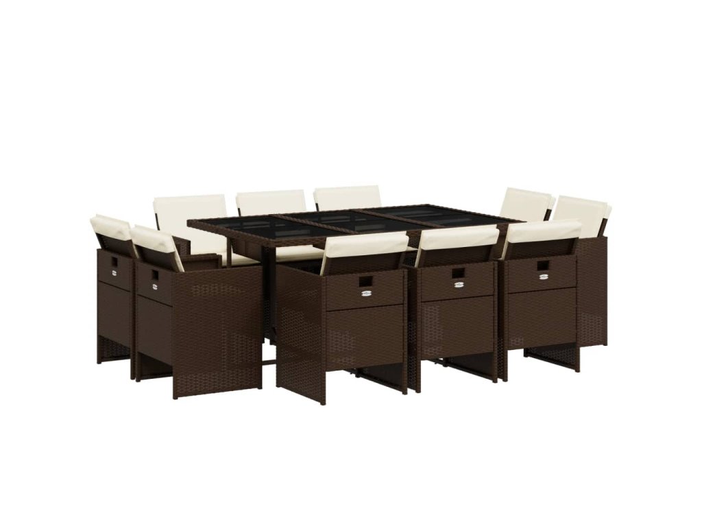 11dílný zahradní jídelní set s poduškami hnědý polyratan 3210669