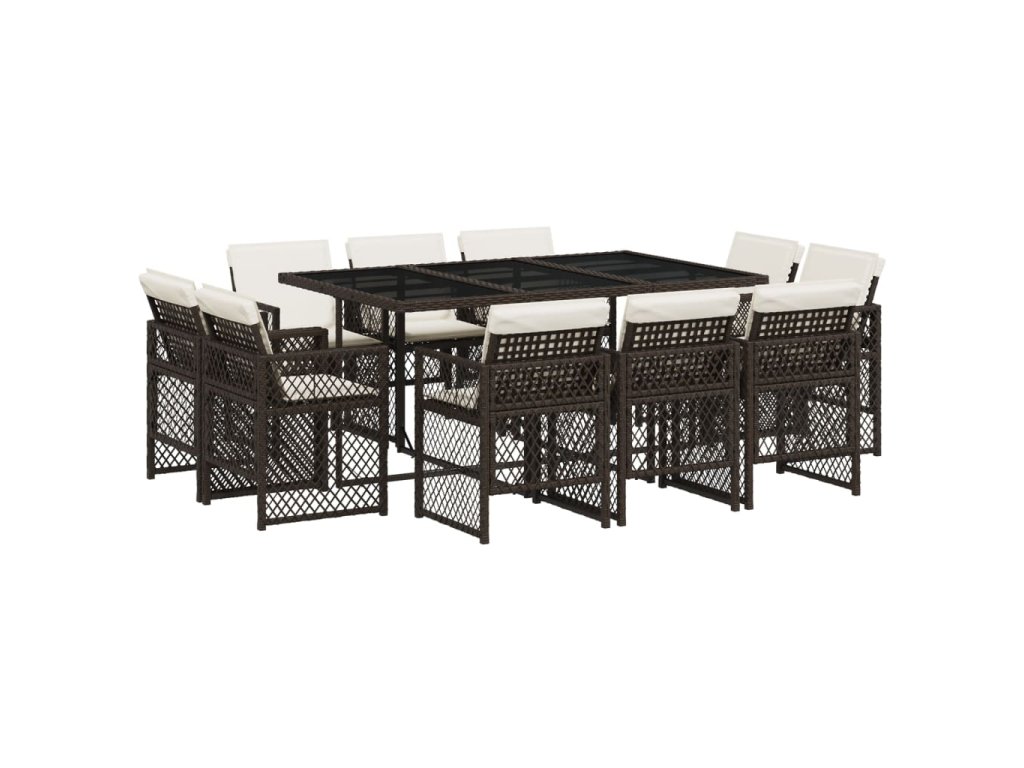 11dílný zahradní jídelní set s poduškami hnědý polyratan 3210849