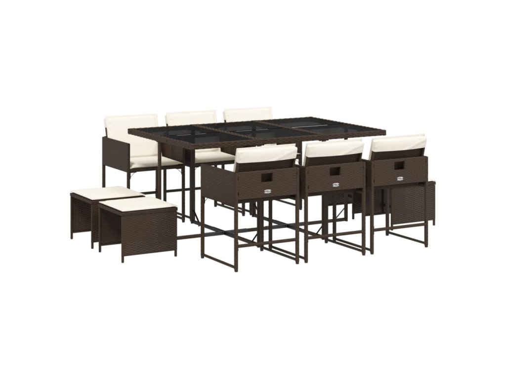 11dílný zahradní jídelní set s poduškami hnědý polyratan 3211329