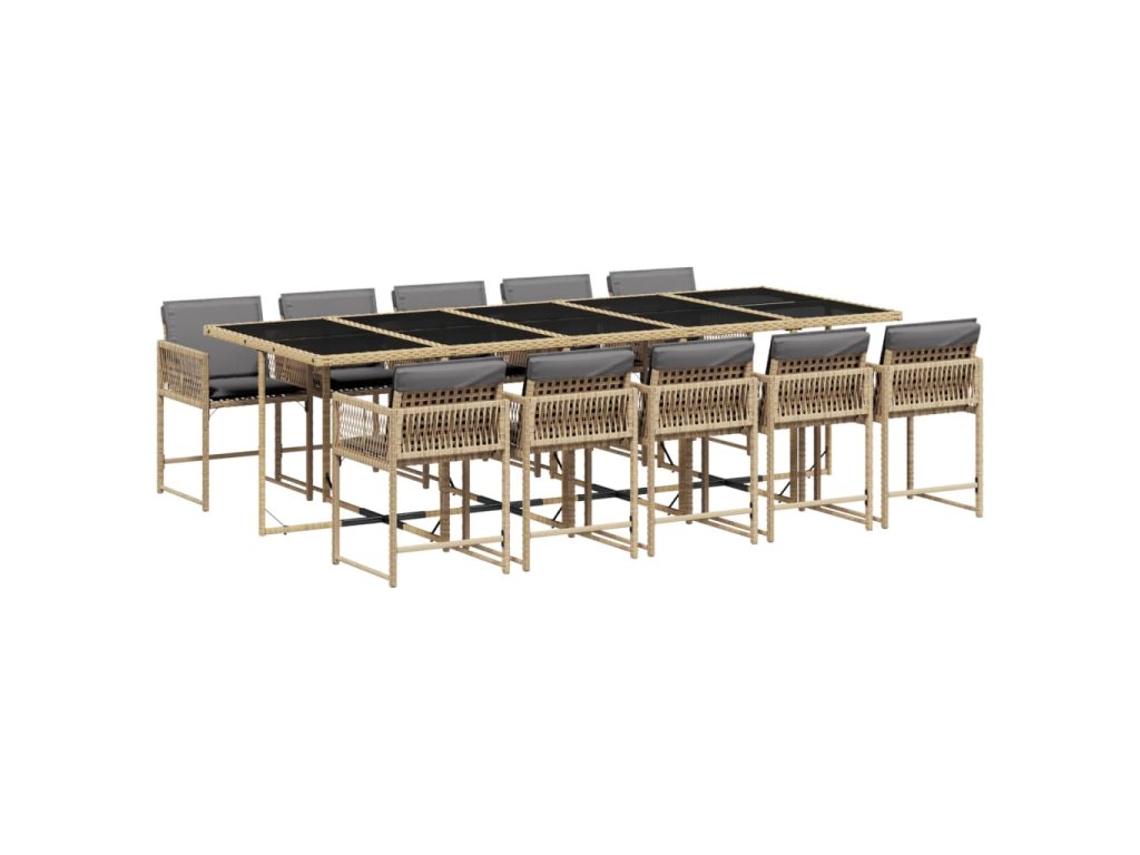 11dílný zahradní jídelní set s poduškami mix béžové polyratan 3211476