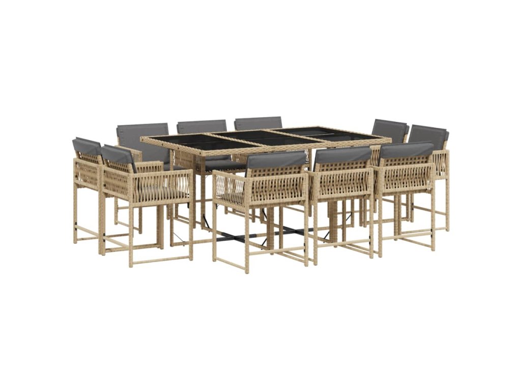 11dílný zahradní jídelní set s poduškami mix béžové polyratan 3211572