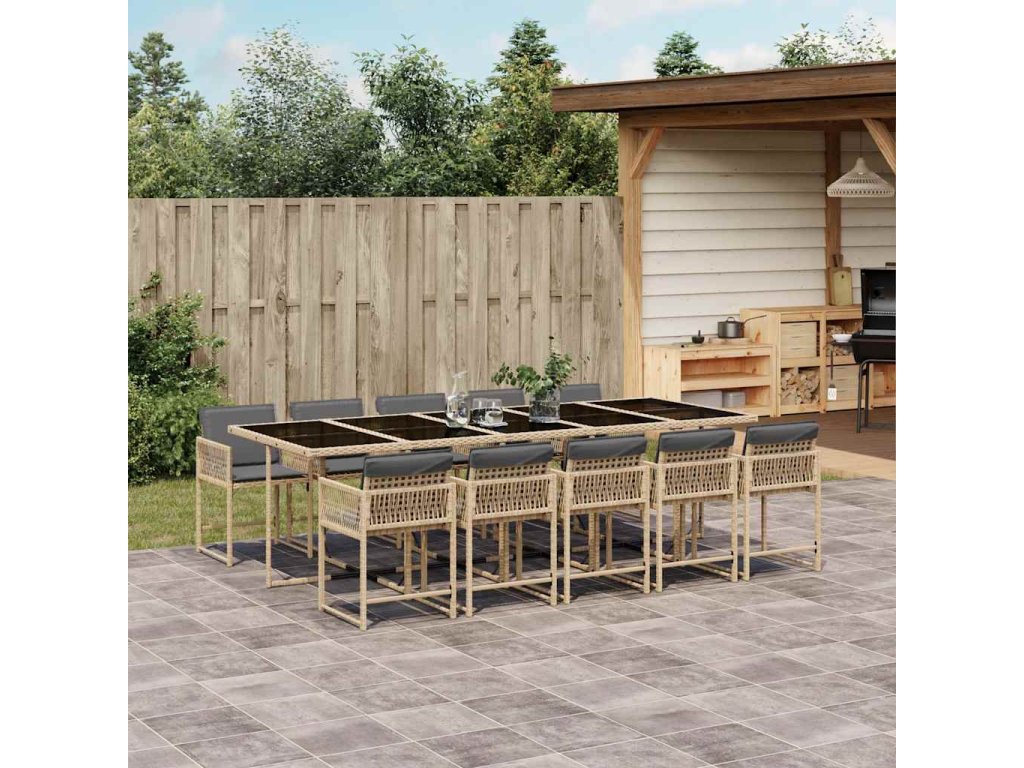 11dílný zahradní jídelní set s poduškami mix béžové polyratan 3211656