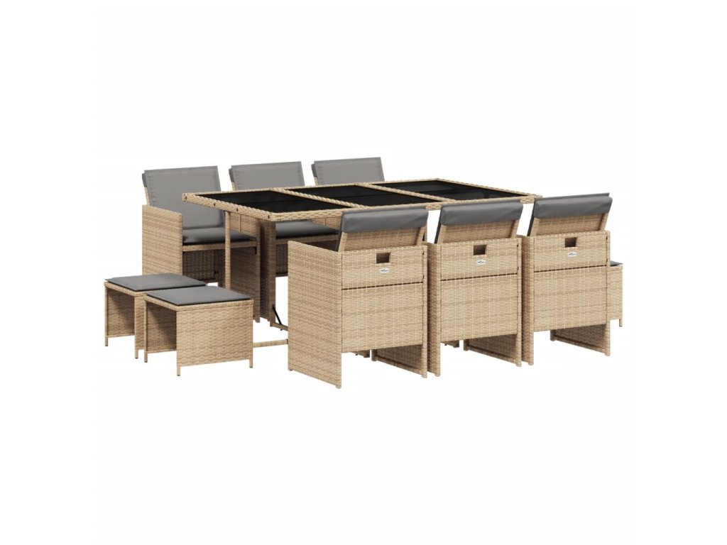 11dílný zahradní jídelní set s poduškami mix béžové polyratan 3277739