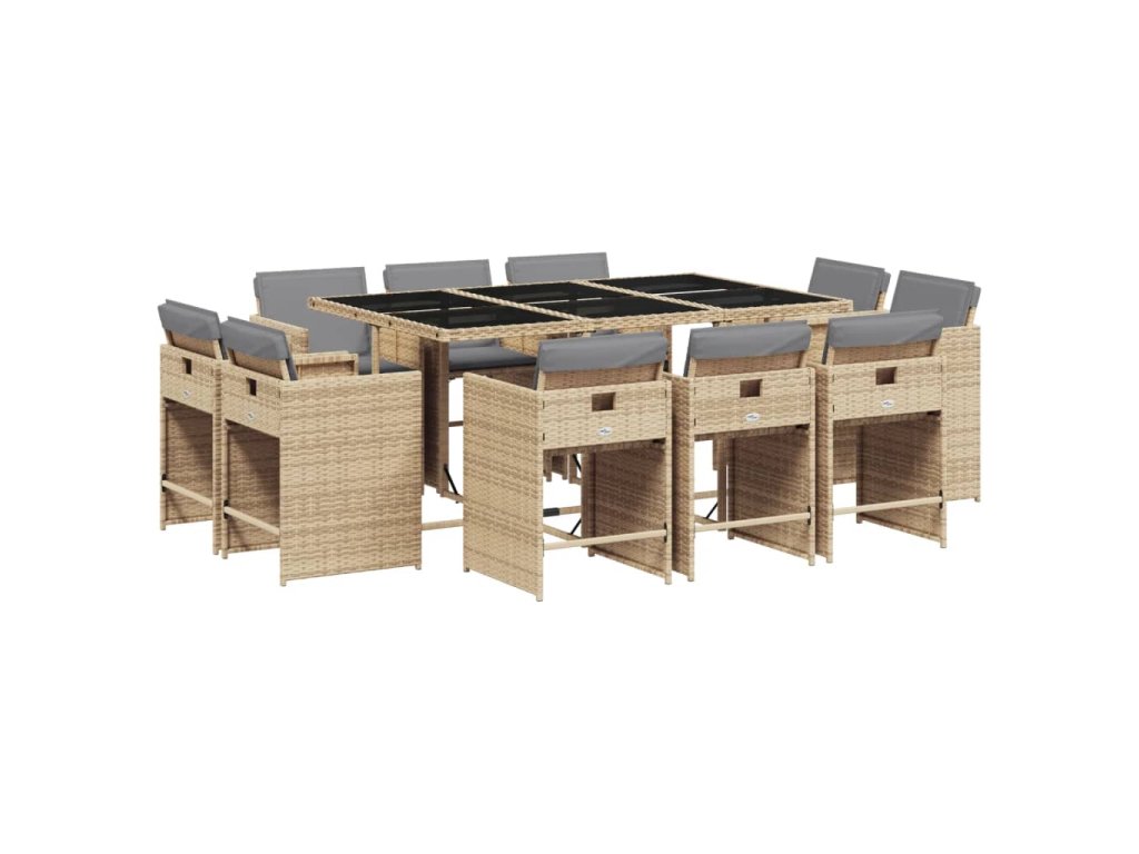 11dílný zahradní jídelní set s poduškami mix béžové polyratan 3277979