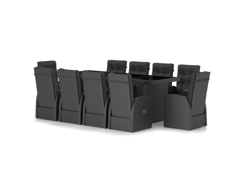 11dílný zahradní jídelní set s poduškami polyratan černý 3059351