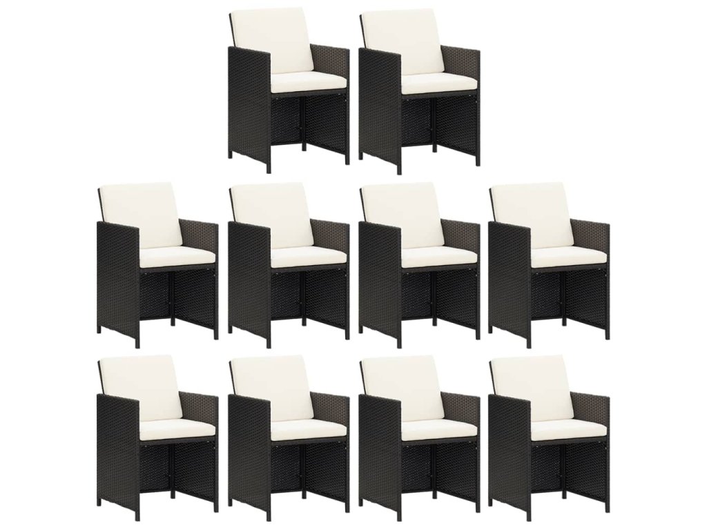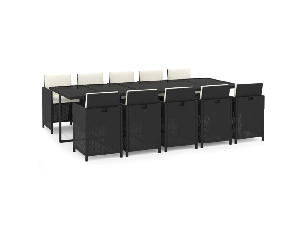 11dílný zahradní jídelní set s poduškami polyratan černý 3095584