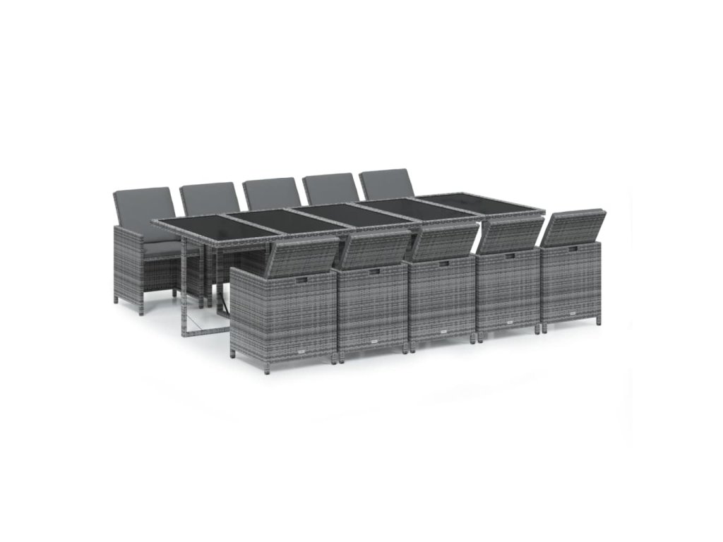 11dílný zahradní jídelní set s poduškami polyratan šedý 3095590