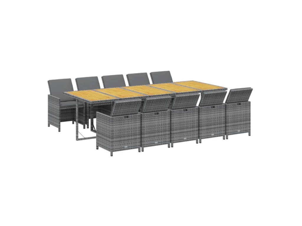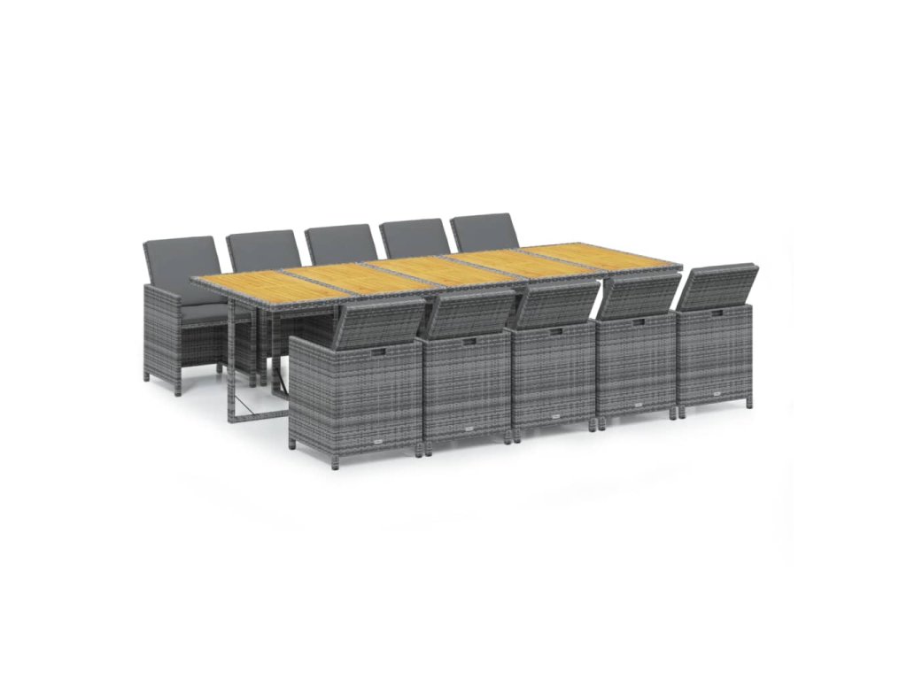 11dílný zahradní jídelní set s poduškami polyratan šedý 3095605