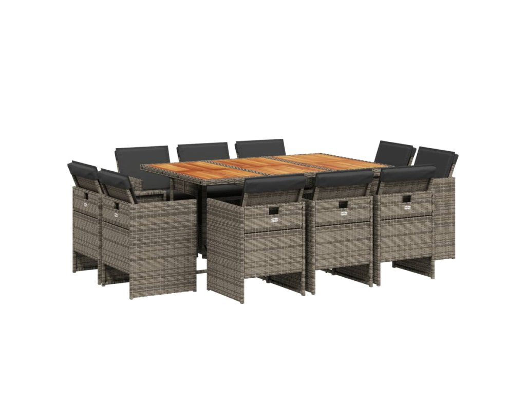 11dílný zahradní jídelní set s poduškami šedý polyratan 3210674
