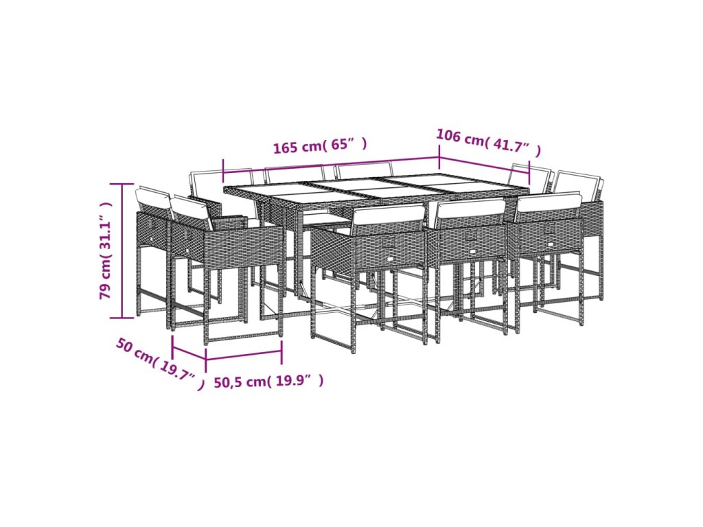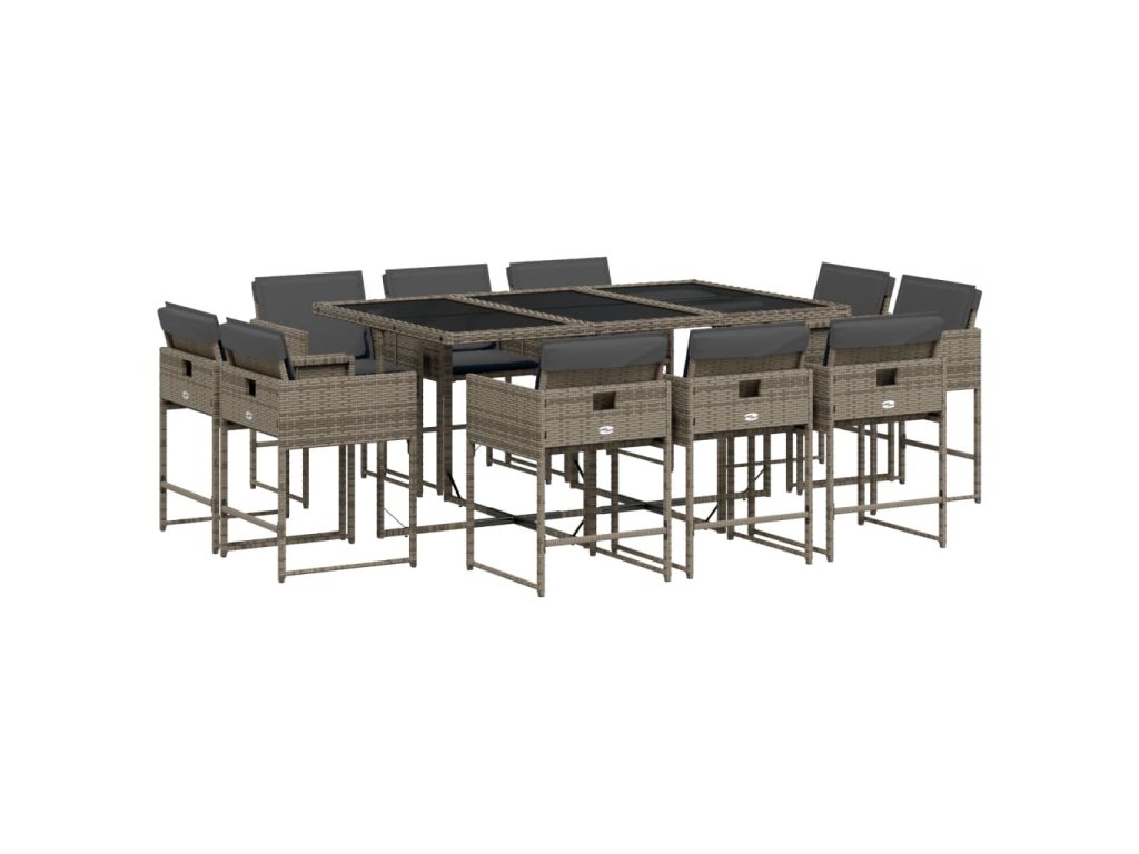 11dílný zahradní jídelní set s poduškami šedý polyratan 3211388