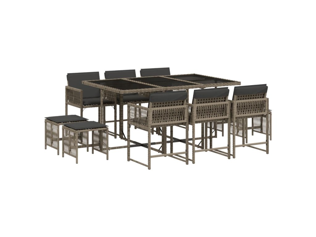 11dílný zahradní jídelní set s poduškami šedý polyratan 3211508