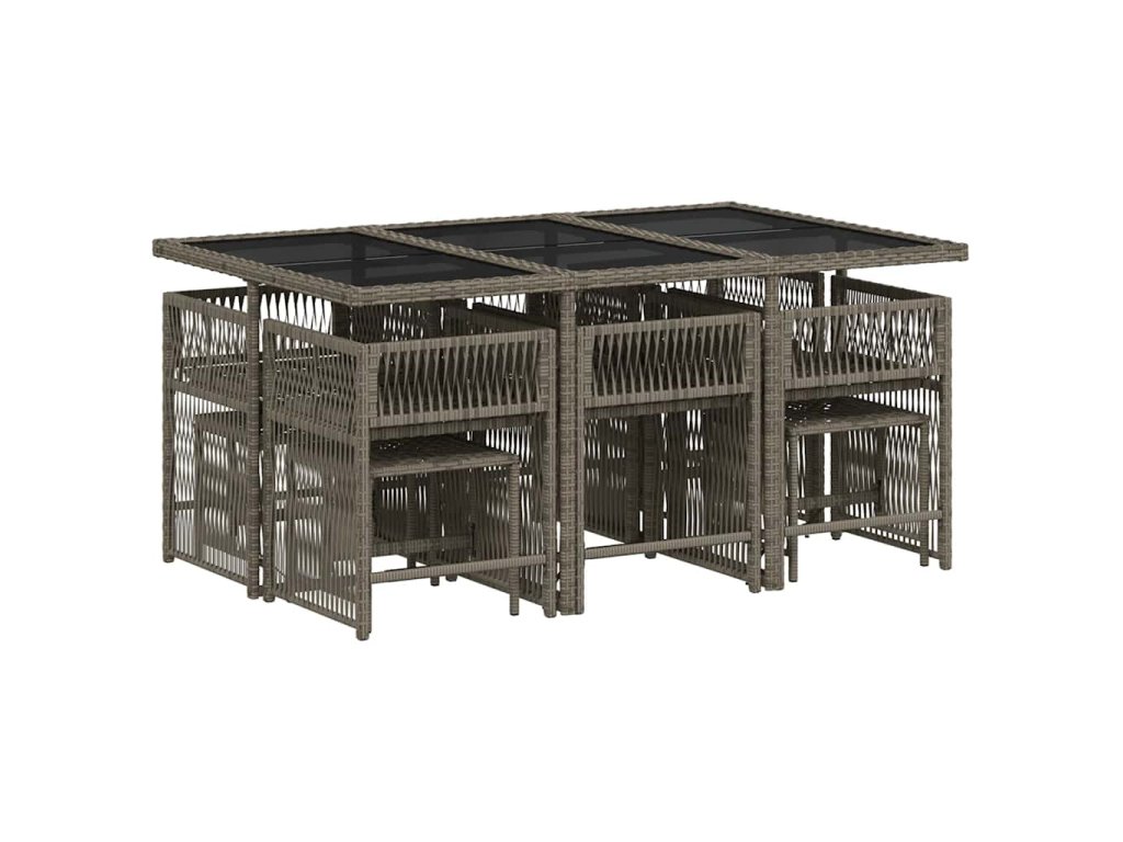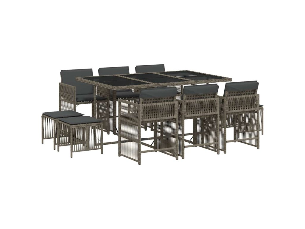 11dílný zahradní jídelní set s poduškami šedý polyratan 3211688
