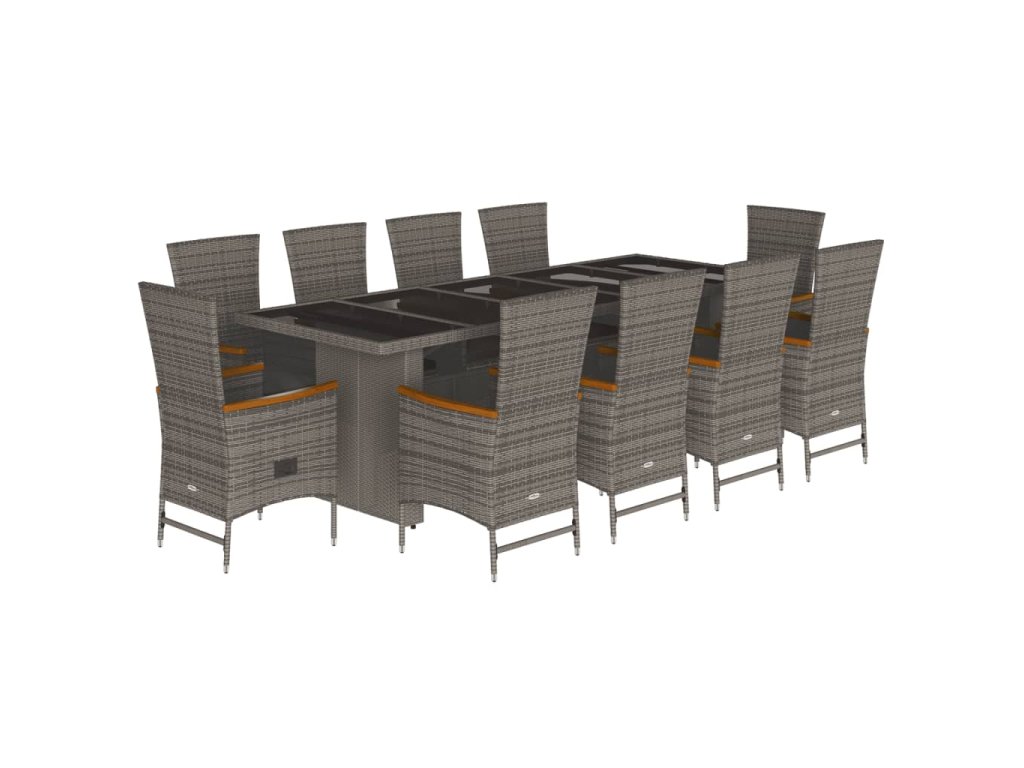 11dílný zahradní jídelní set s poduškami šedý polyratan 3277556