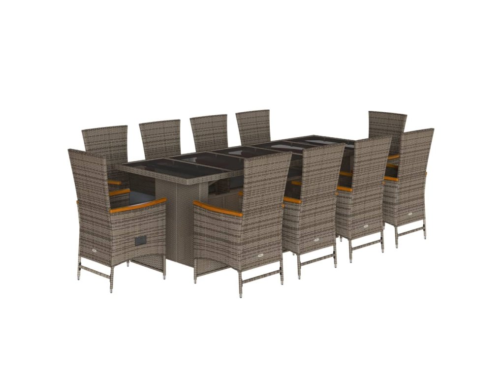 11dílný zahradní jídelní set s poduškami šedý polyratan 3277558