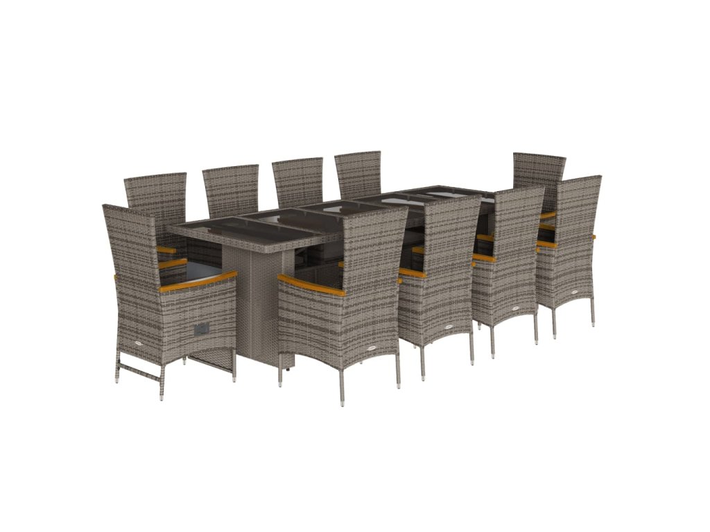 11dílný zahradní jídelní set s poduškami šedý polyratan 3277560