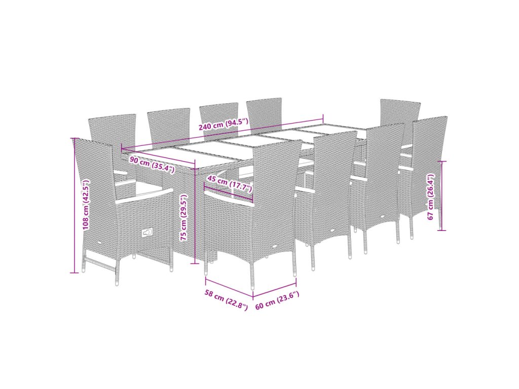 - Rozměry: 240 x 90 x 75 cm (D x Š x V)