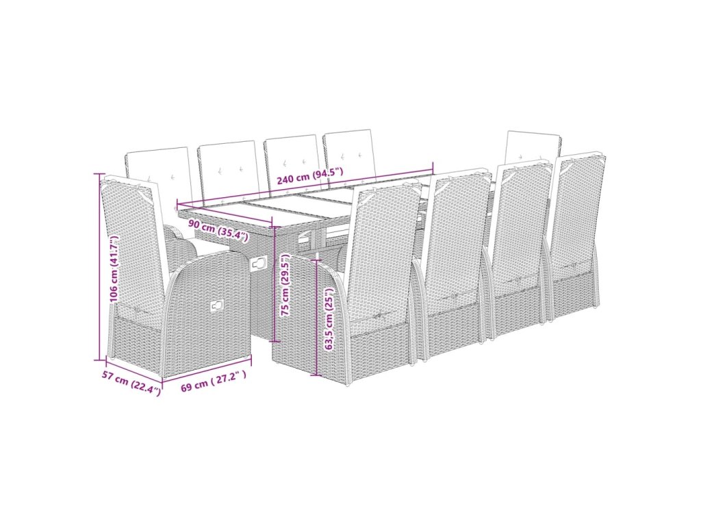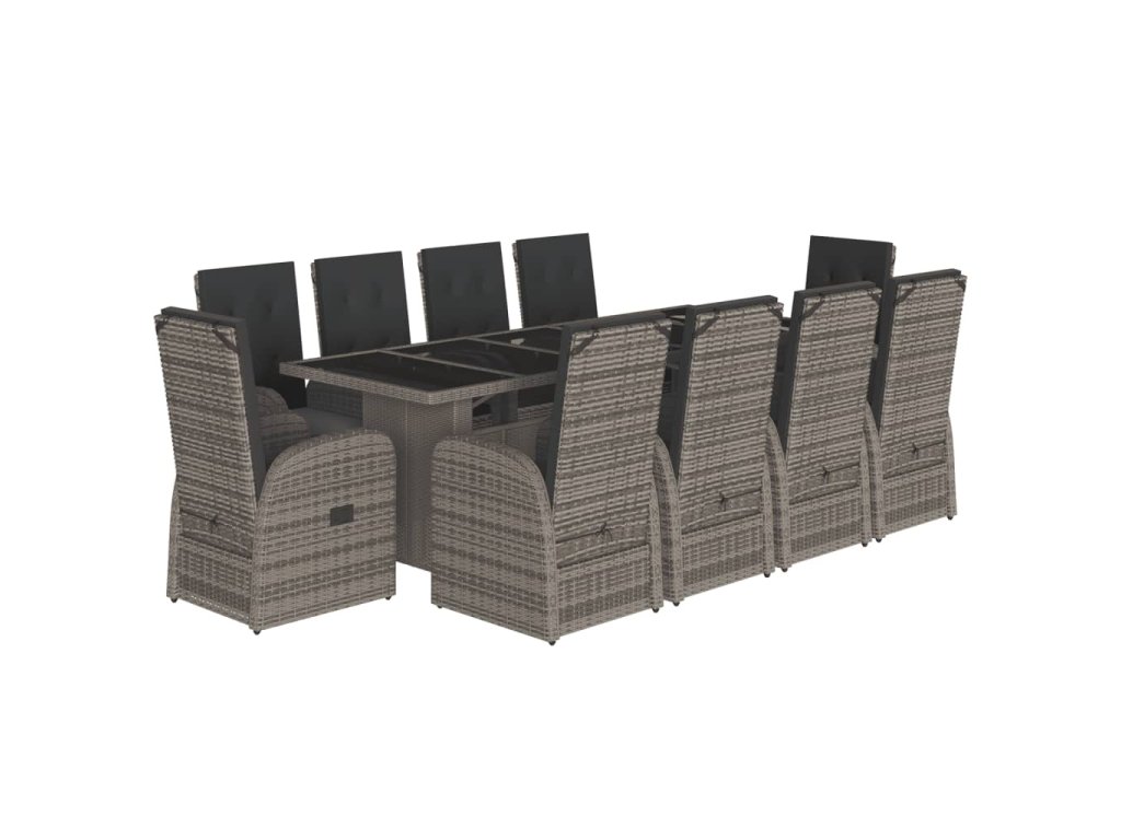 11dílný zahradní jídelní set s poduškami šedý polyratan 3277601