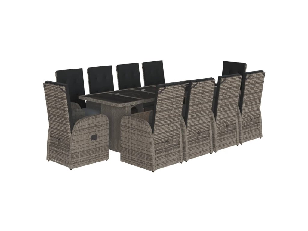 11dílný zahradní jídelní set s poduškami šedý polyratan 3277604