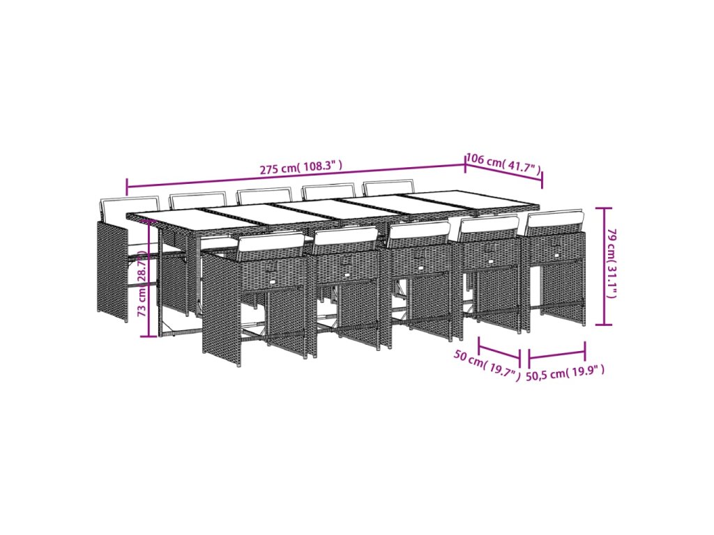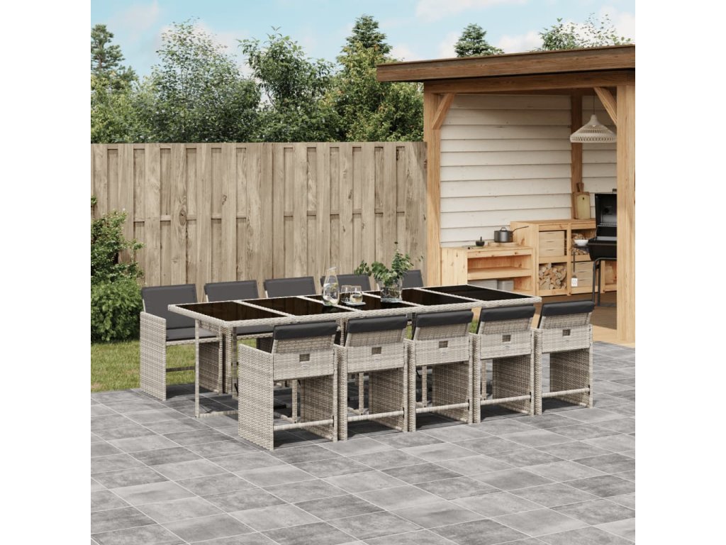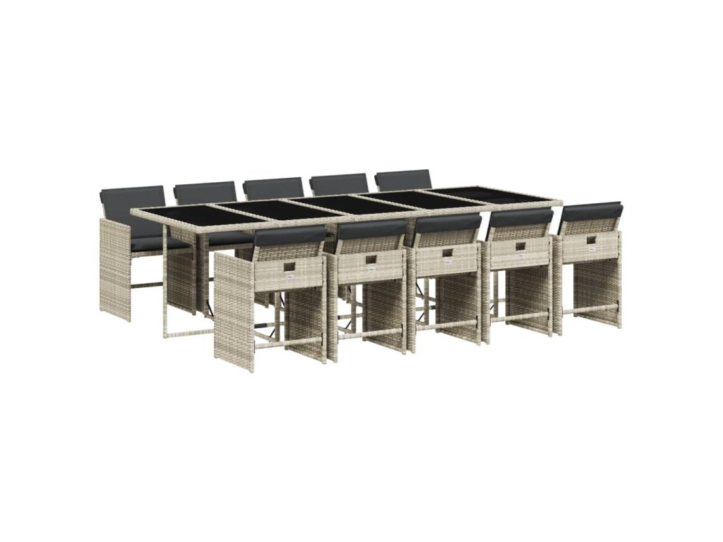 11dílný zahradní jídelní set s poduškami světle šedý polyratan 3211115