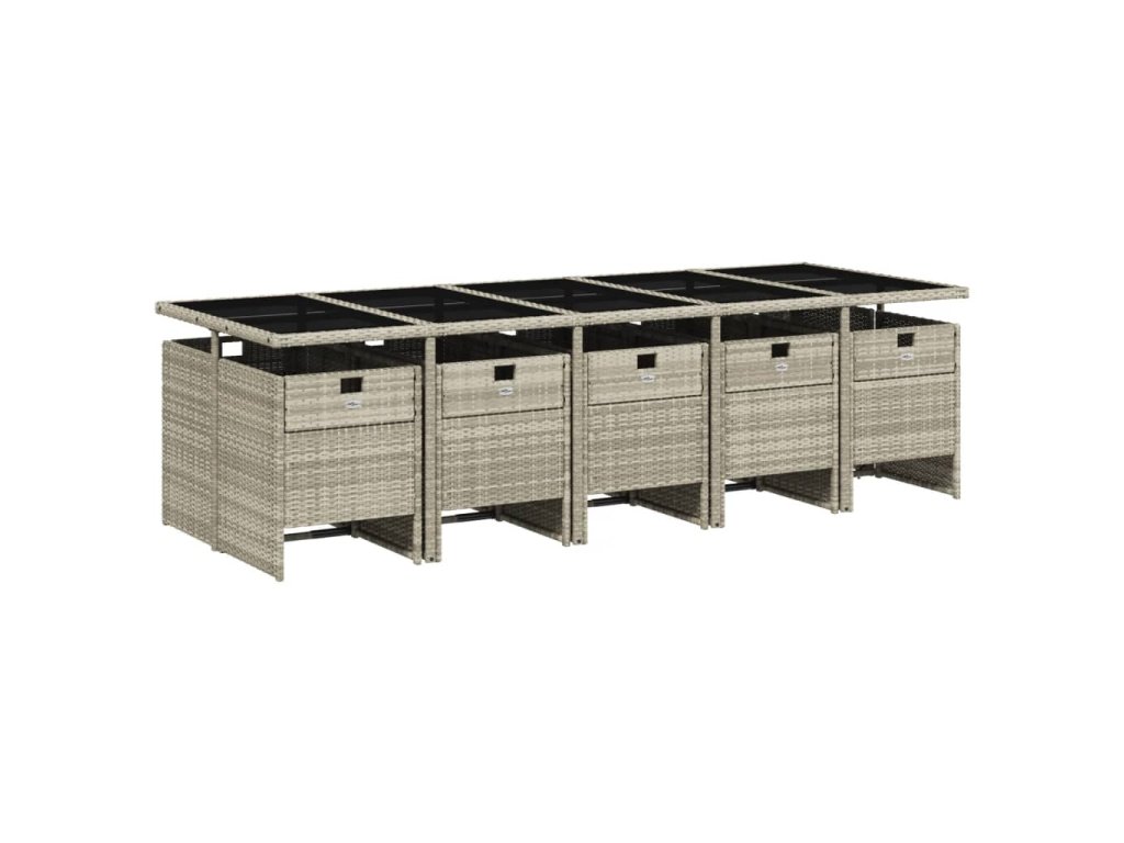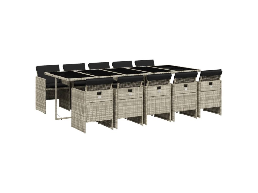 11dílný zahradní jídelní set s poduškami světle šedý polyratan 3277702