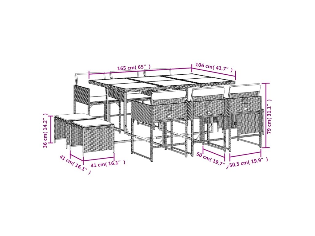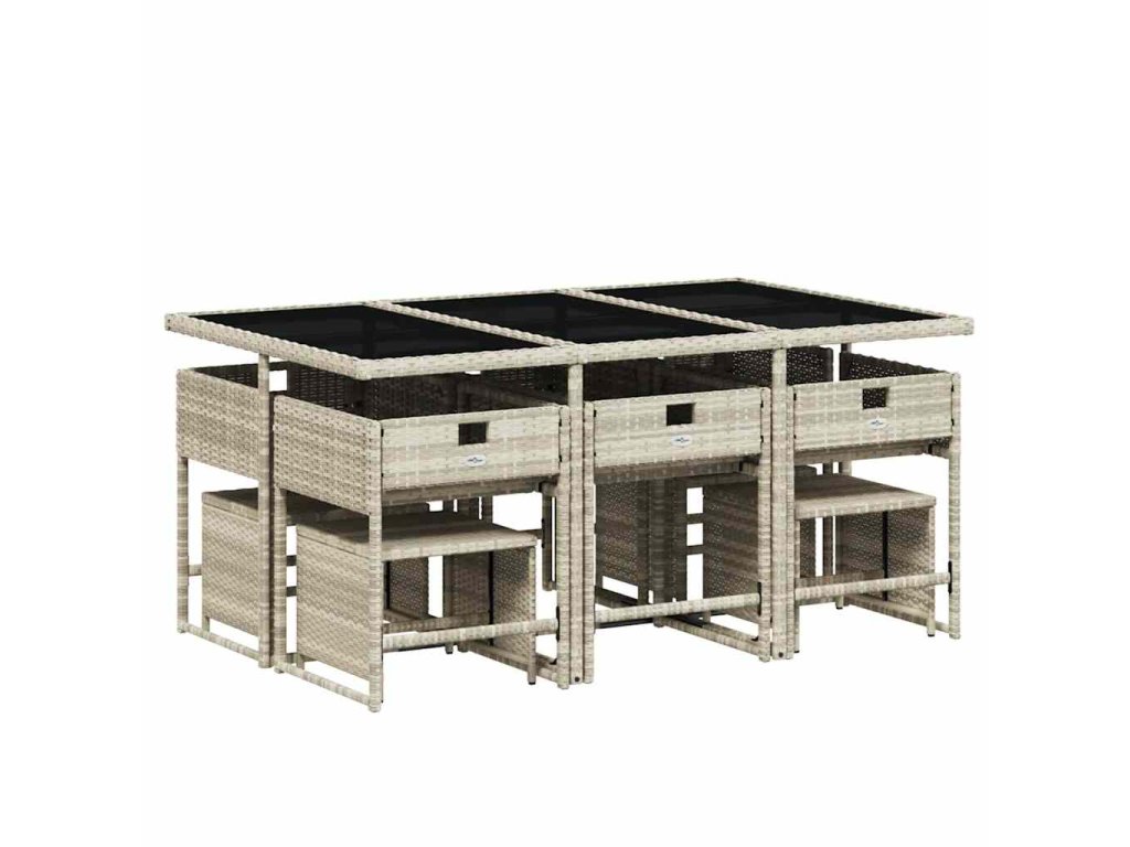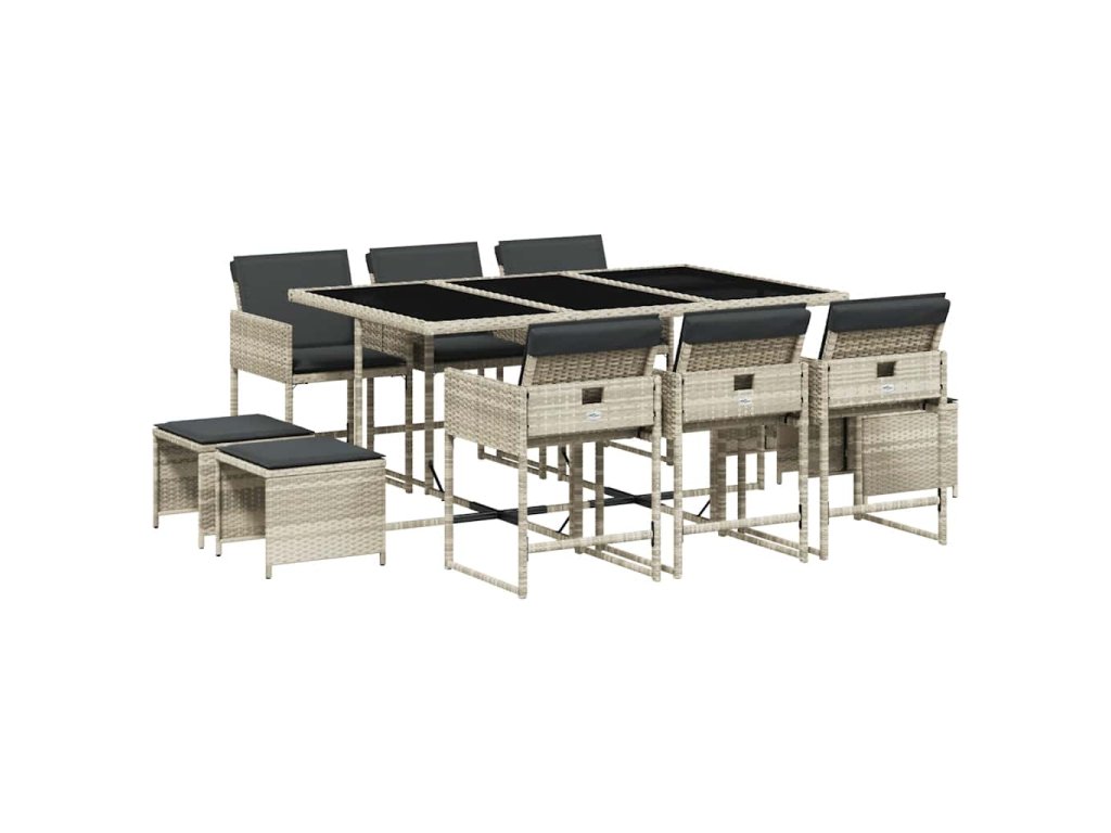 11dílný zahradní jídelní set s poduškami světle šedý polyratan 3278098