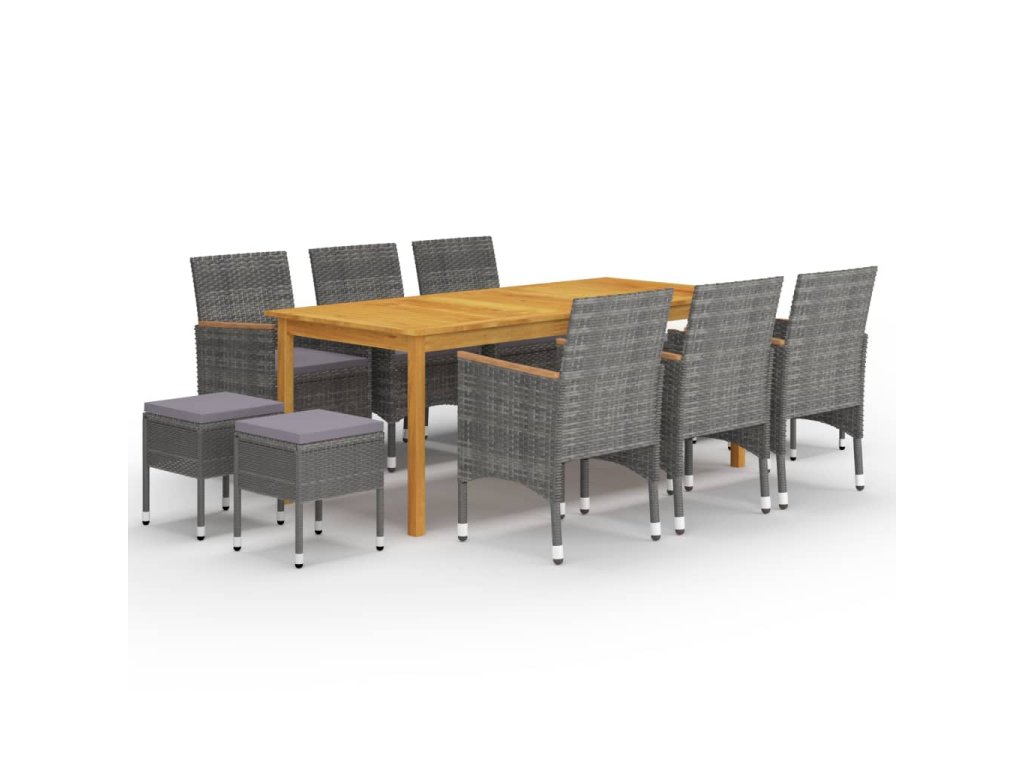 Jídelní stůl je zhotovený z masivního akáciového dřeva s olejovaným povrchem, takže je stabilní, odolný a nenáročný na údržbu. Jídelní židle a stoličky mají rám z práškově lakované oceli, opletený PE ratanem, který výborně vzdoruje klimatickým vlivům. Dlouho vám proto vydrží a snadno je očistíte. Zahradní židle mají zaoblená opěradla a područky, které přispívají k většímu pohodlí, stejně jako jejich ergonomický tvar. Područky jsou navíc nádherně zdobené masivním akáciovým dřevem, které jim dodává rustikální šarm. Každé křeslo je opatřené odnímatelnou, hustě polstrovanou poduškou, aby váš odpočinek byl skutečně komfortní.