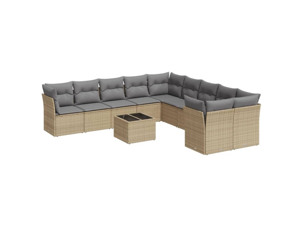 11dílný zahradní sedací souprava s poduškami béžový polyratan 3218249