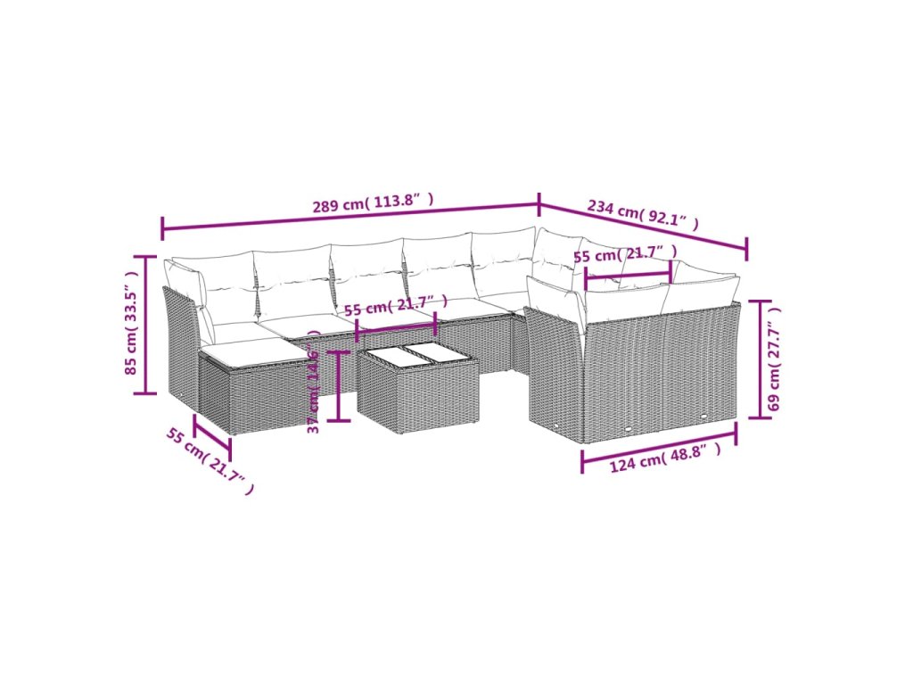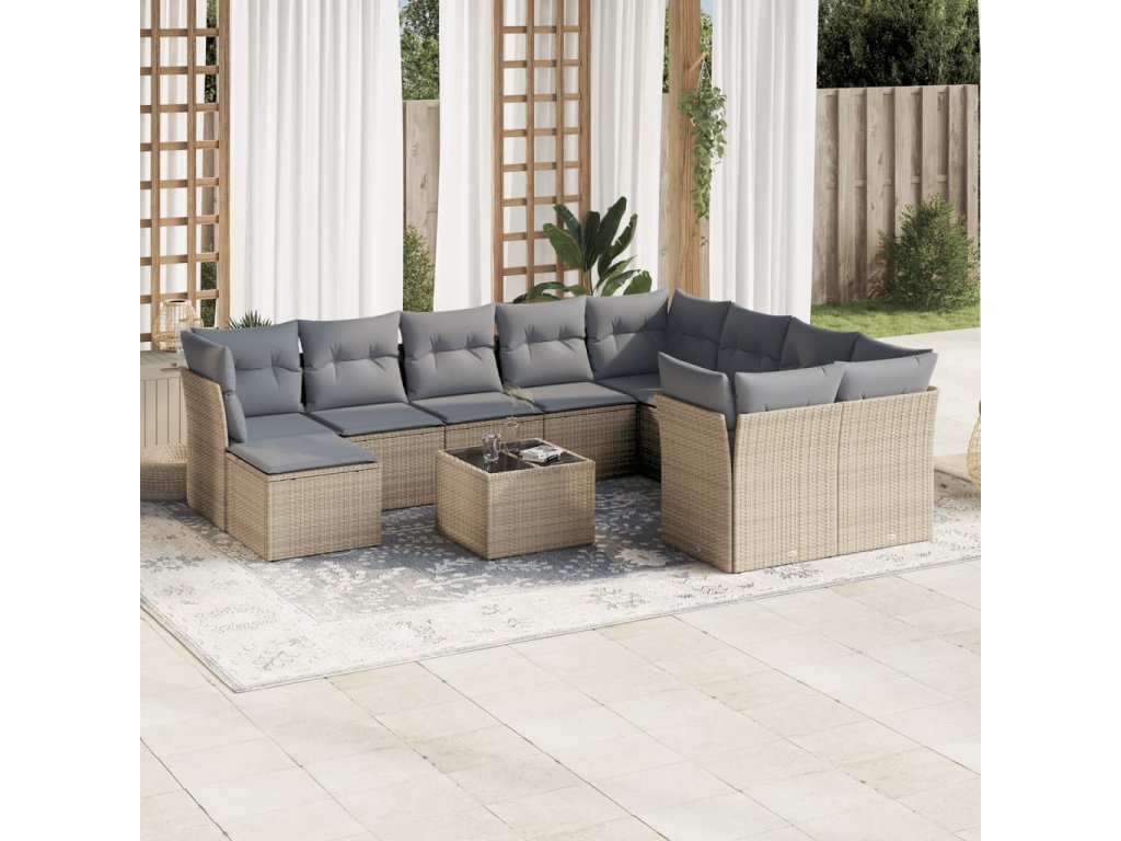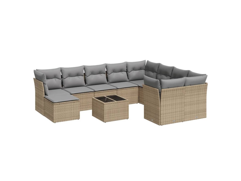 11dílný zahradní sedací souprava s poduškami béžový polyratan 3218599