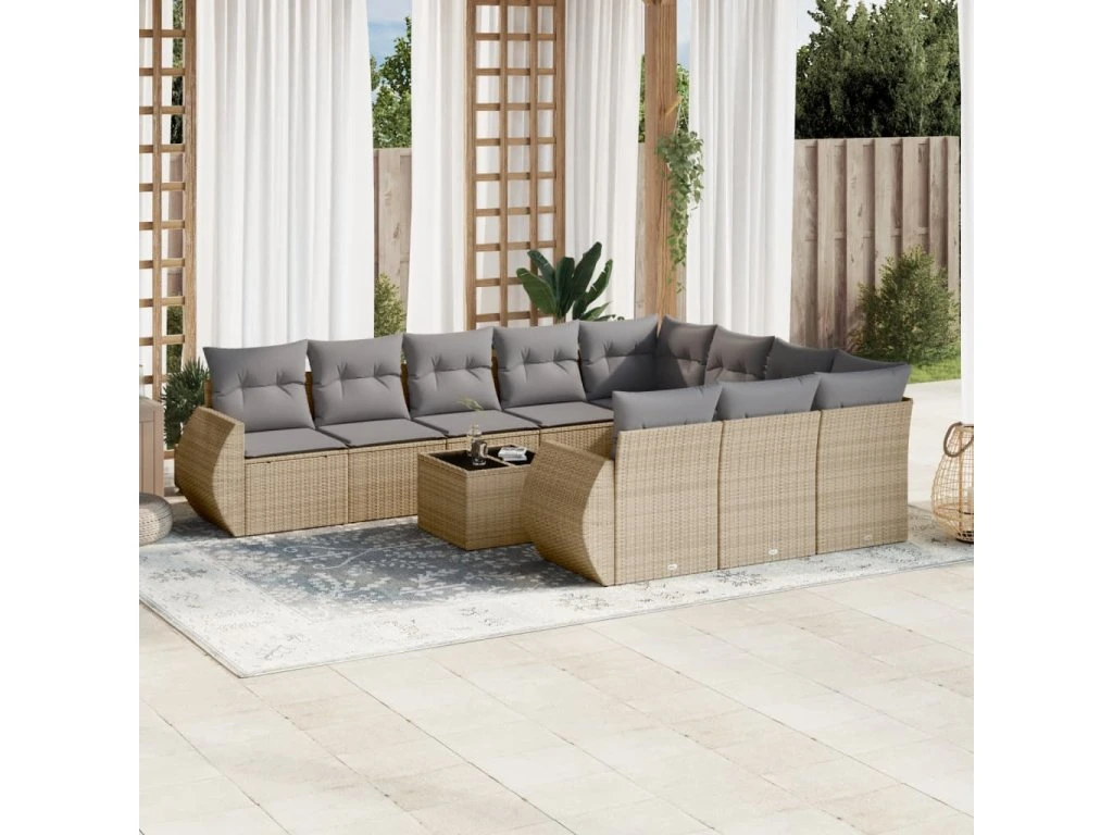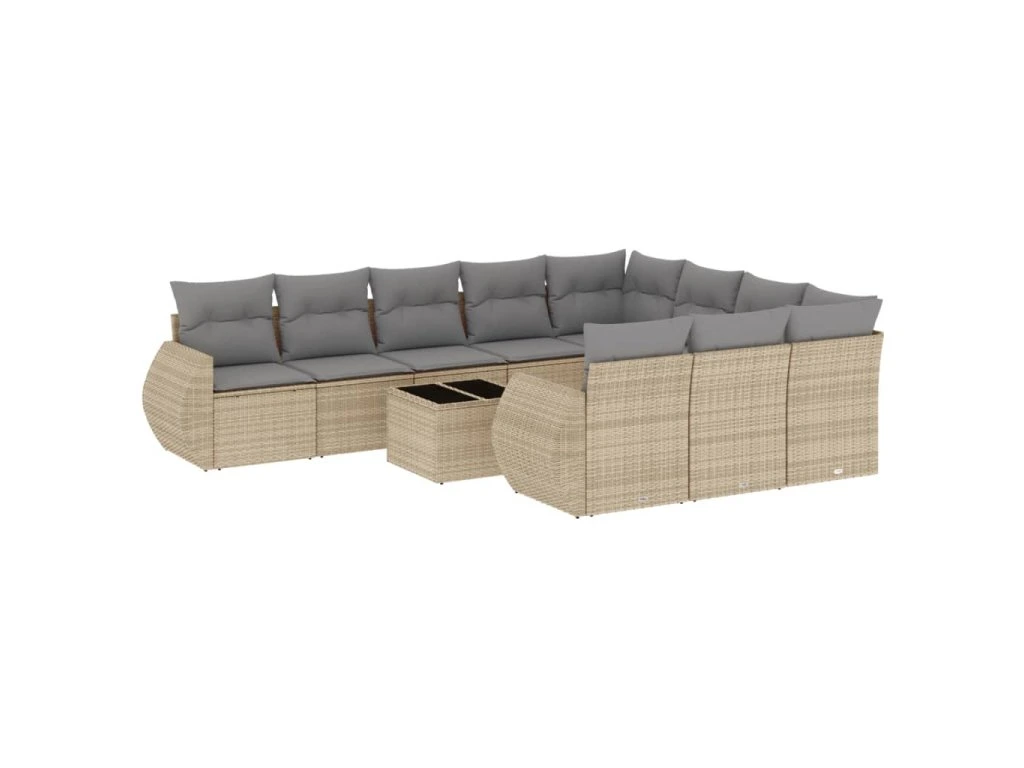 11dílný zahradní sedací souprava s poduškami béžový polyratan 3221898