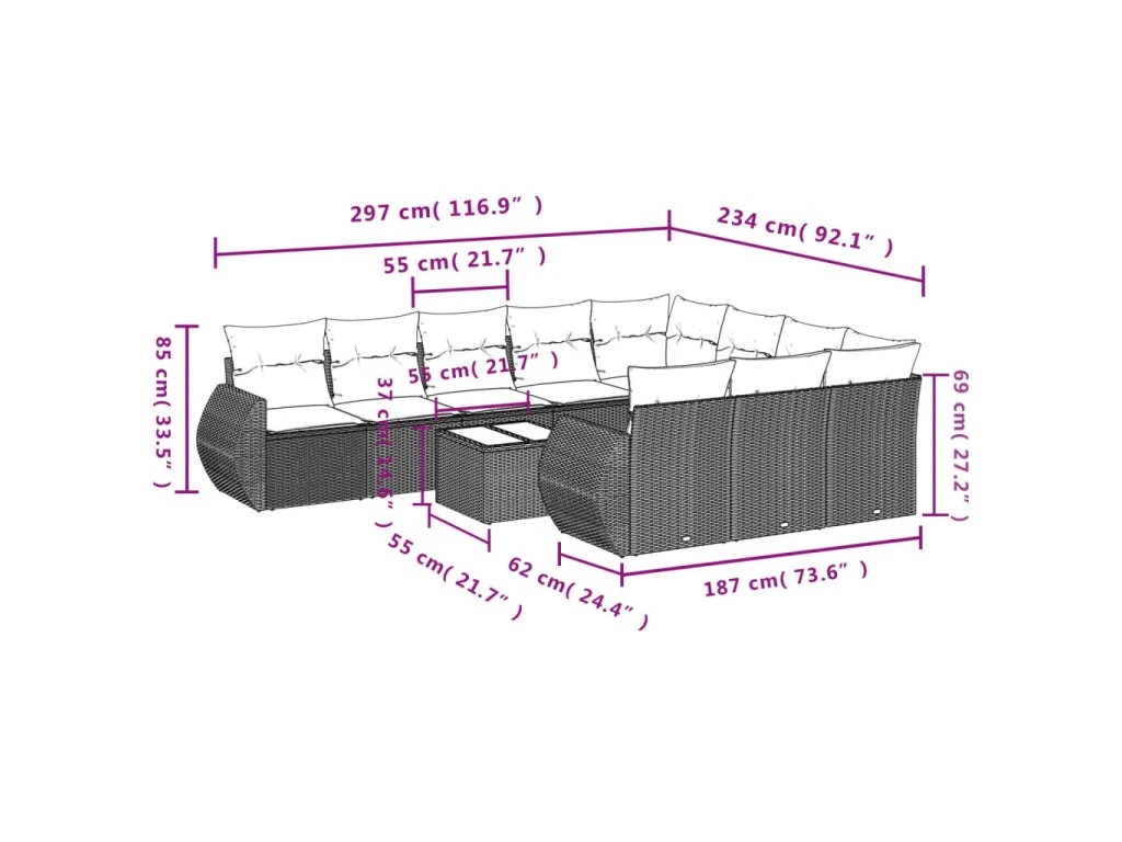 Tato zahradní sedací souprava je dokonalým doplňkem vaší zahrady, terasy nebo dvorku a poskytne vám pohodlné a příjemné místo, kde si můžete povídat s rodinou a přáteli nebo jen tak odpočívat a užívat si pobyt venku.